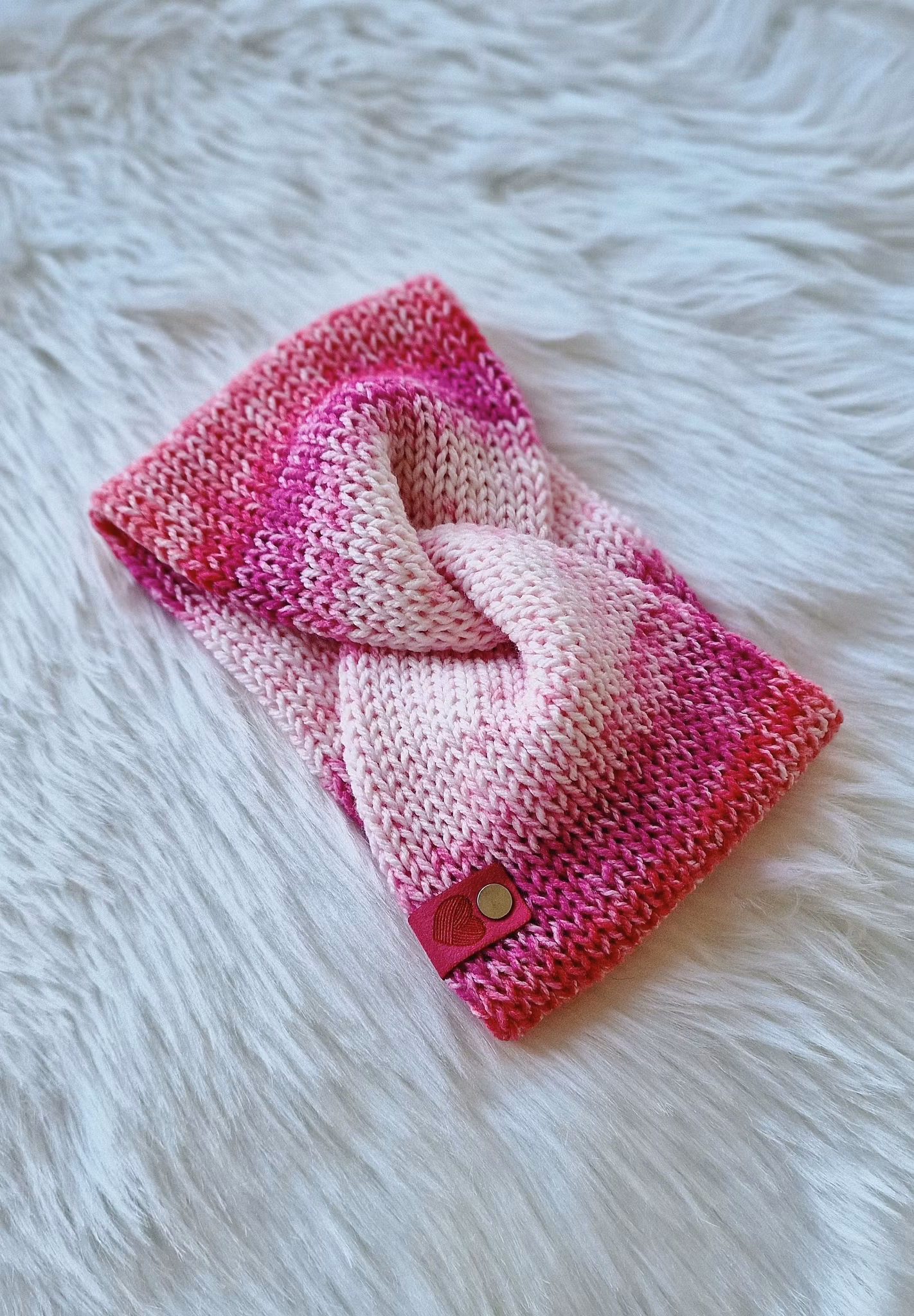 Dubbelstickat pannband med en twist som fin detalj, perfekt att använda hela hösten och vintern.